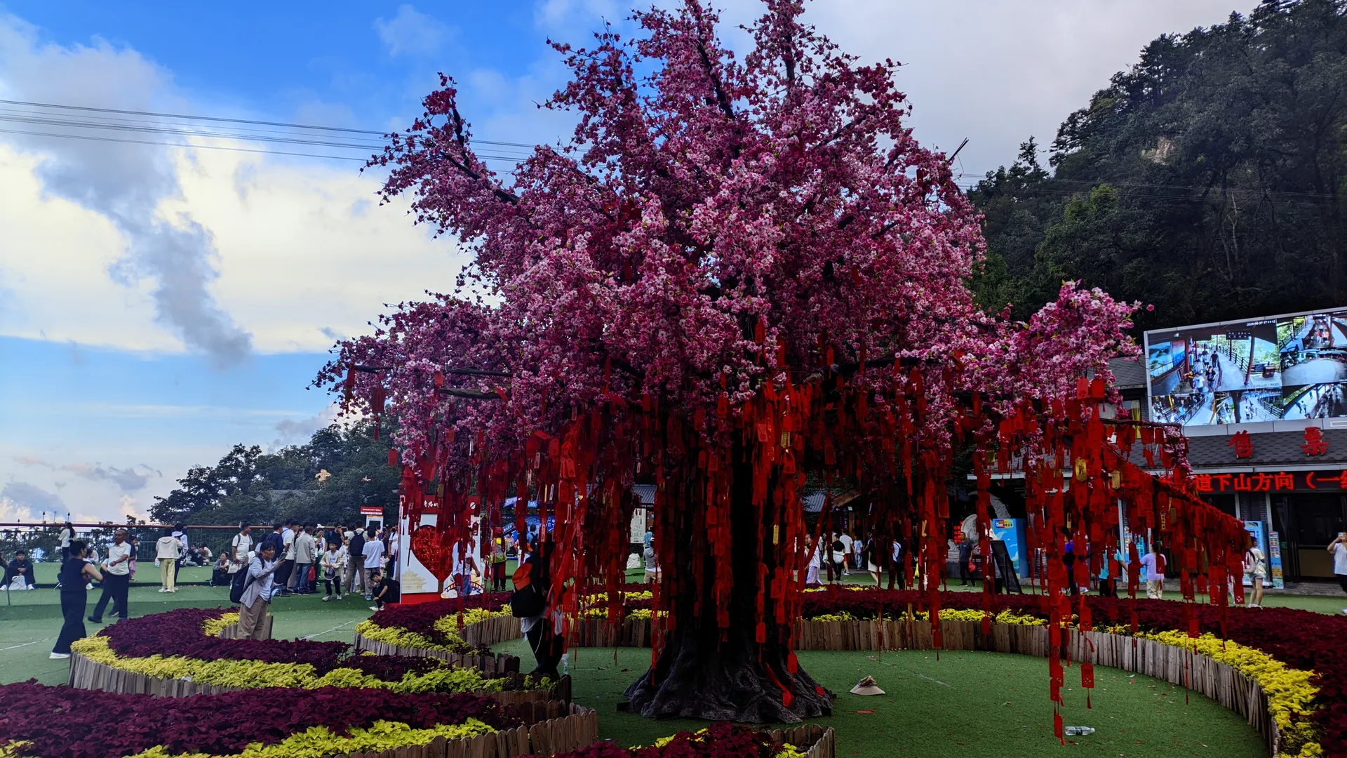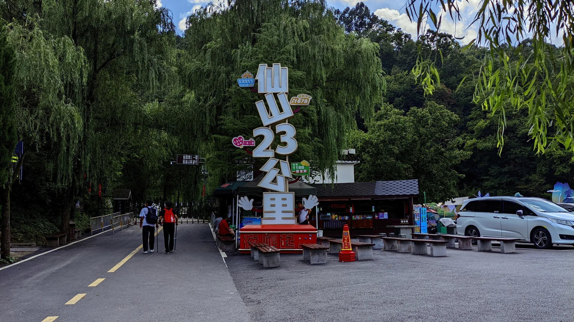 上午10点坐车大概是下午1点半左右抵达地质广场,这个地方挺偏的,距离人烟多的地方有5公里,右边有些吃饭铺子和民宿(80还是100一晚),买票地方在地质广场右侧有个卖票大厅,左边一点有条路就是登山入口,有观光车,5块一人,总共有2公里多点吧,给你送到检票口。