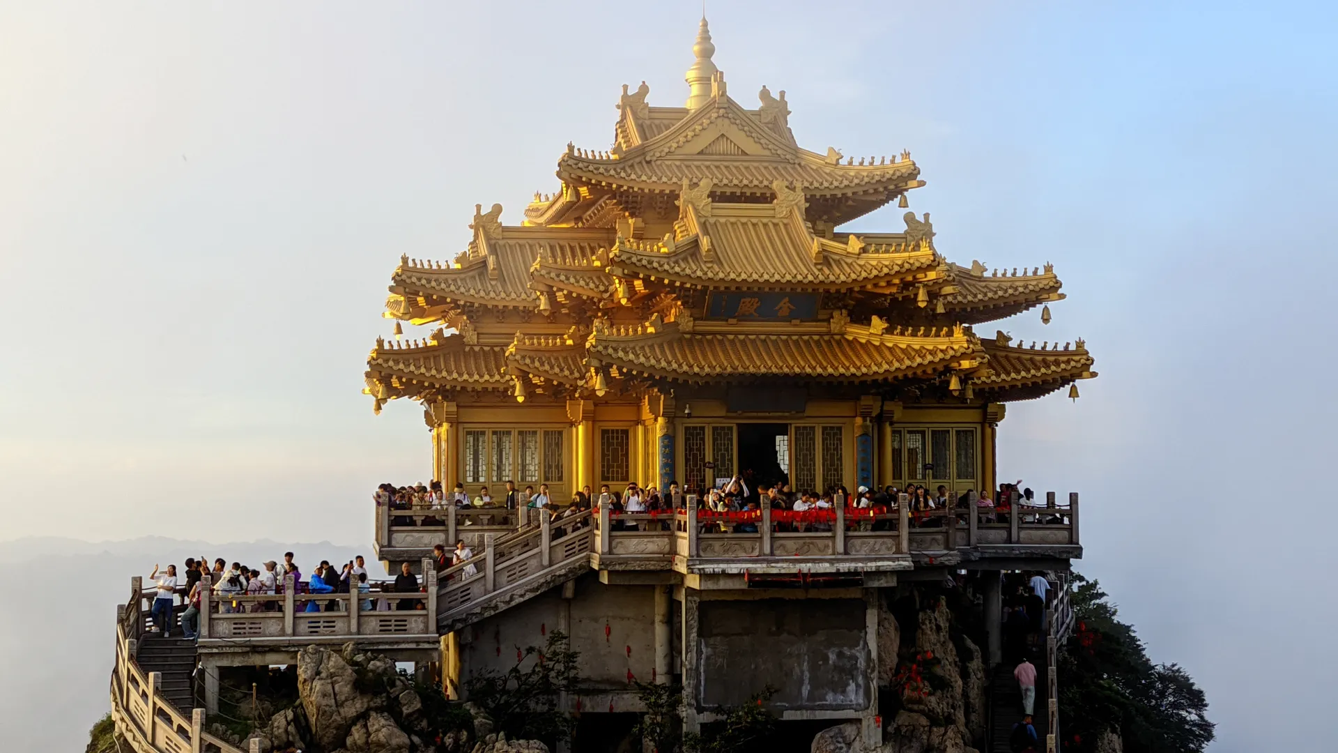一条路走到一个岔路口,一边是啥山来着,另一边就是通往金顶道观群